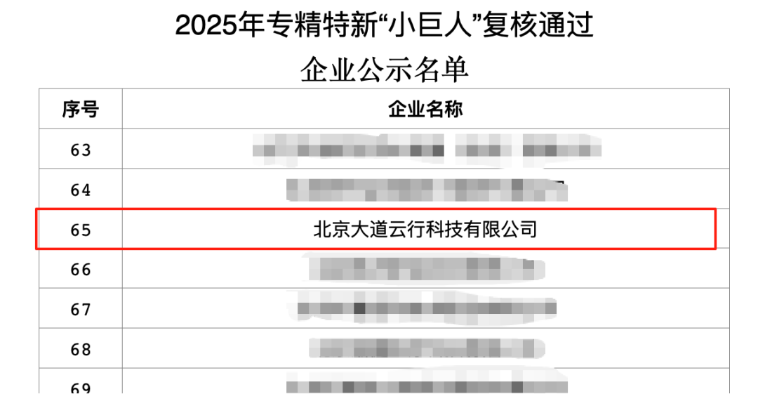 近日,工信部正式公示了2025年专精特新“小巨人”企业复核通过名单。在这份代表中国制造业与信息技术领域核心创新力量的权威榜单中,北京大道云行科技有限公司凭借其在软件定义存储领域的持续深耕与卓越表现,成功通过严格复核,高居榜单第65位!这不仅是对企业过往成绩的肯定,更是对其未来发展的期许。