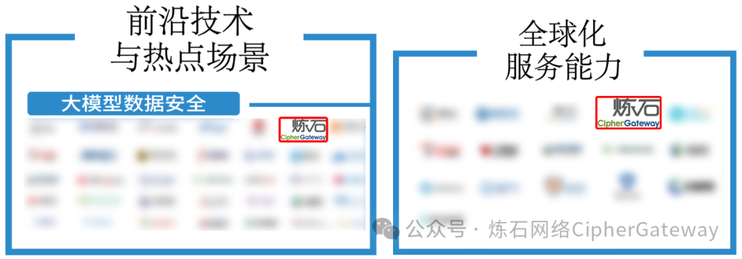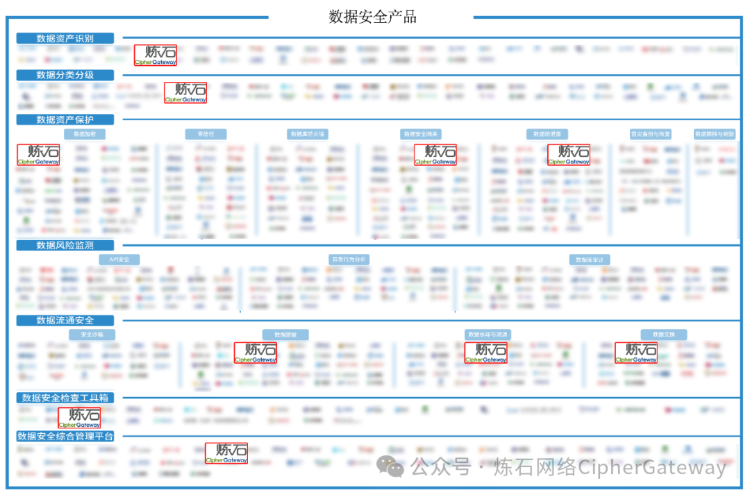 炼石凭借深厚的技术研发基础、卓越的产品创新能力和出色的市场服务表现,入选全景图中的“数据安全产品”类别下的数据资产识别、数据分类分级、数据资产保护(数据加密、数据安全网关、数据防泄露)、数据流通安全(数据脱敏、数据水印与溯源、数据交换)、数据安全检查工具箱、数据安全综合管理平台,“数据安全服务”类别下的咨询服务、建设服务、应急响应服务,“前沿技术与热点场景”类别下的大模型数据安全,以及“全球化服务能力”等四大类别十五项数据安全关键领域。
